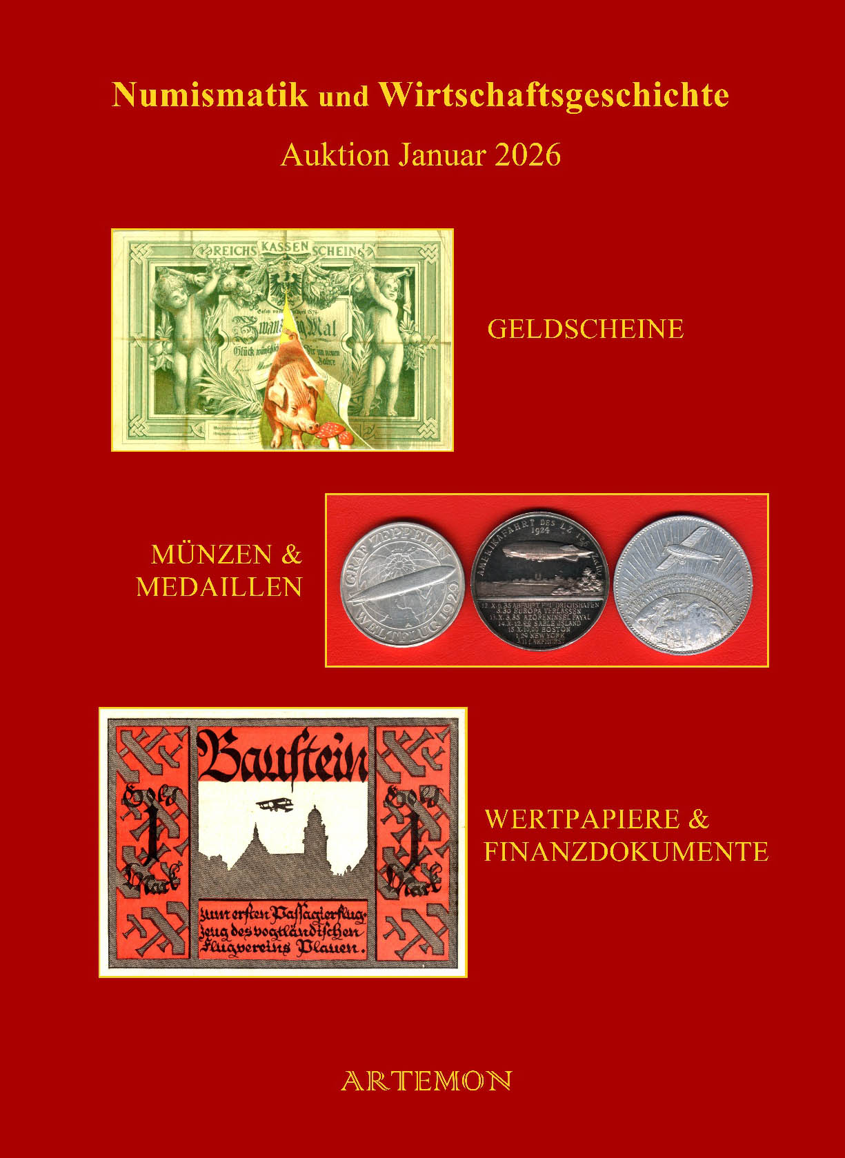 Neben unserem traditionellen Angebot an Münzen & Medaillen, Geldscheinen und Historischen Wertpapieren finden Sie diesmal im Variateil auch: Militaria, Briefmarken, Fotos & Ansichtskarten, Telefonkarten, Gemälde & Grafik, Uhren & Schmuck, historische Dokumente und Landkarten. Es lohnt sich zu stöbern, zumal die Ausrufpreise sehr günstig angesetzt sind. Viele Lose sind von den Einlieferern nicht limitiert. Dort starten wir unabhängig vom Wert bereits bei 20 Euro.