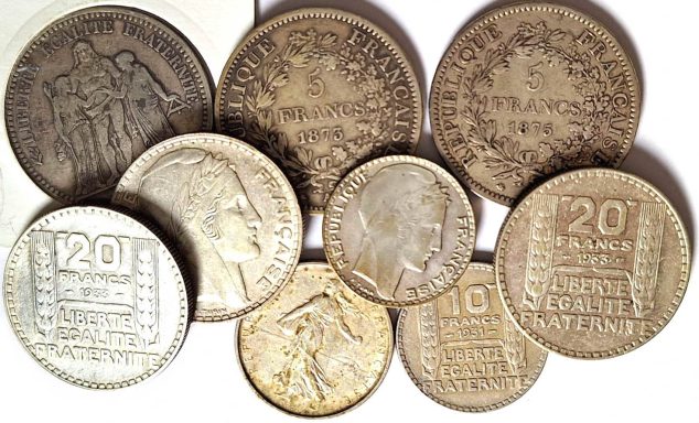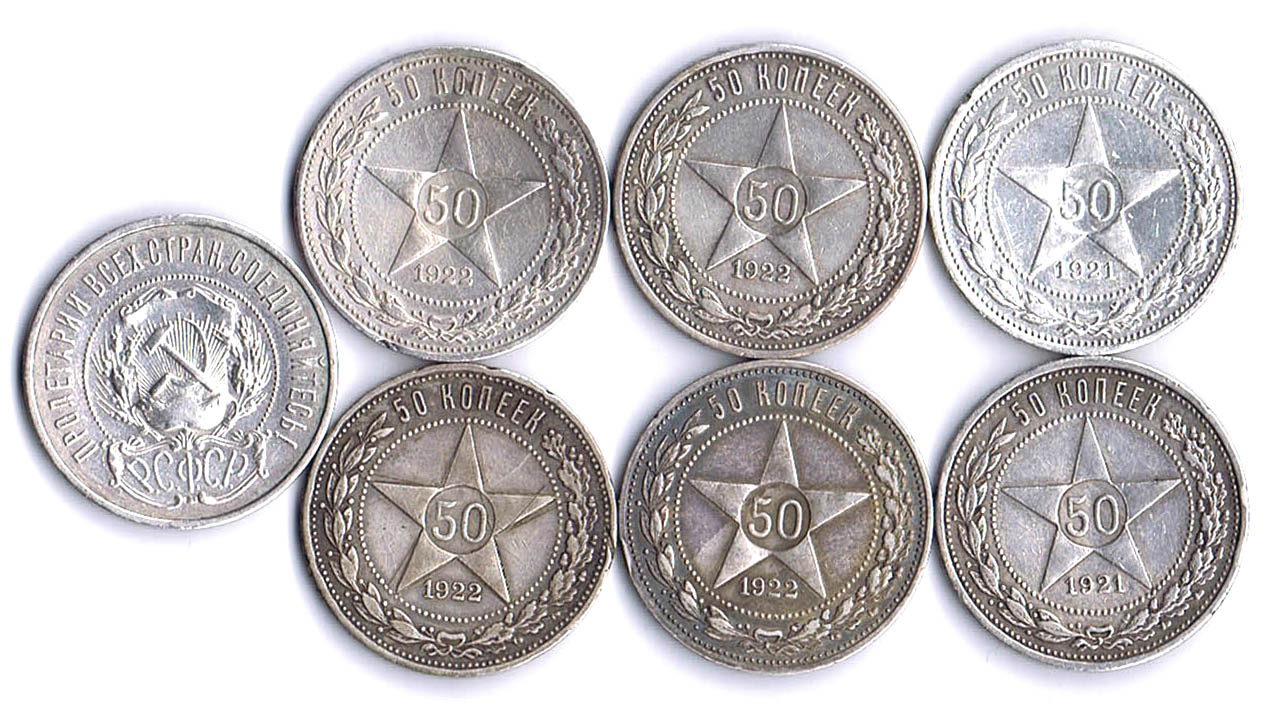 7 verschiedene Übersee-Silbermünzen: British Virgin Islands Dollar 1973 Fregattvögel, Bahamas 2 Dollar 1972 Flamingos, Somali Republik 100 Shillings 2015 Elefanten, Malediven 100 Rufiyaa 1979, Kuba 1 Peso 1953 Marti, Liberia 5 Dollars 2000 Elefanten, Südkorea 5000 Won Winterspiele 2018 Skifahrer fvz-PP