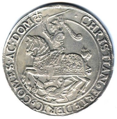 St. Georg nach links reitend / 4 feldrig behelmtes Wappen, Jzz. geteilt neben der Kartusche 28,83g Dav.7021, KM 222 kaum sichtbare Hksp. ss+