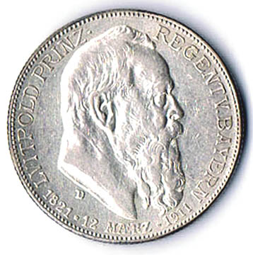 2 Mark 1911 Prinzregent Luitpold 90. Geburtstag J. 48 vz