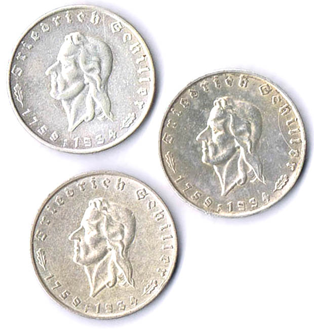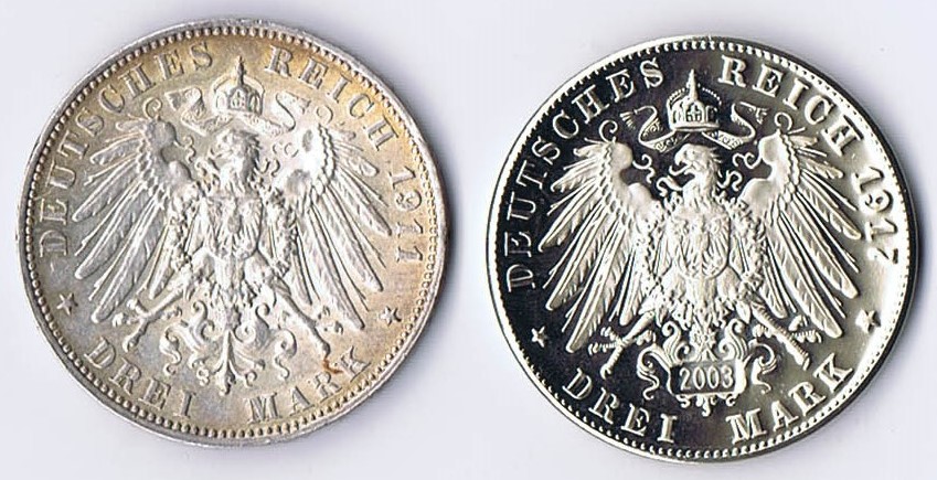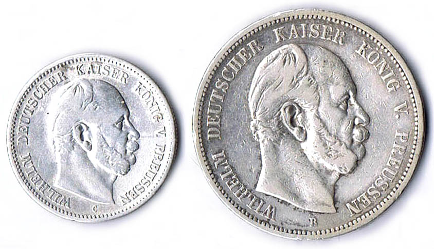 5 Mark 1893 D und 3 Mark 1911 (Rand bearbeitet) J. 46, 49 ss