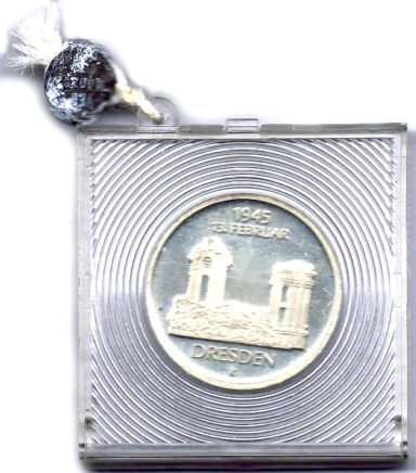 Alte Kassette mit Goldprägung der Firma Krietzschwerke Wurzen i./Sa. Darin Los aus Meissener Böttgersteinzeug Kriegergedächtnis-Stätte 1923 (Scheuch 818a), 4x DDR 20 Mark Schiller, Heinrich Mann (2), Thälmann. Dazu zweite Kassette mit Minibuch DRESDEN Verlag Zeit im Bild 1982 und Medaille Museum für Geschichte der Stadt Dresden im Landhaus, alles in guter Erhaltung, Münzen und Medaillen vz-prf