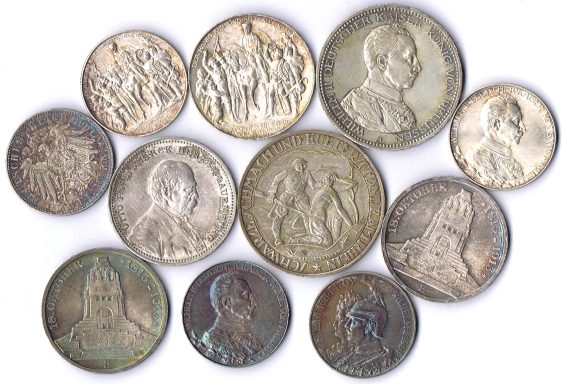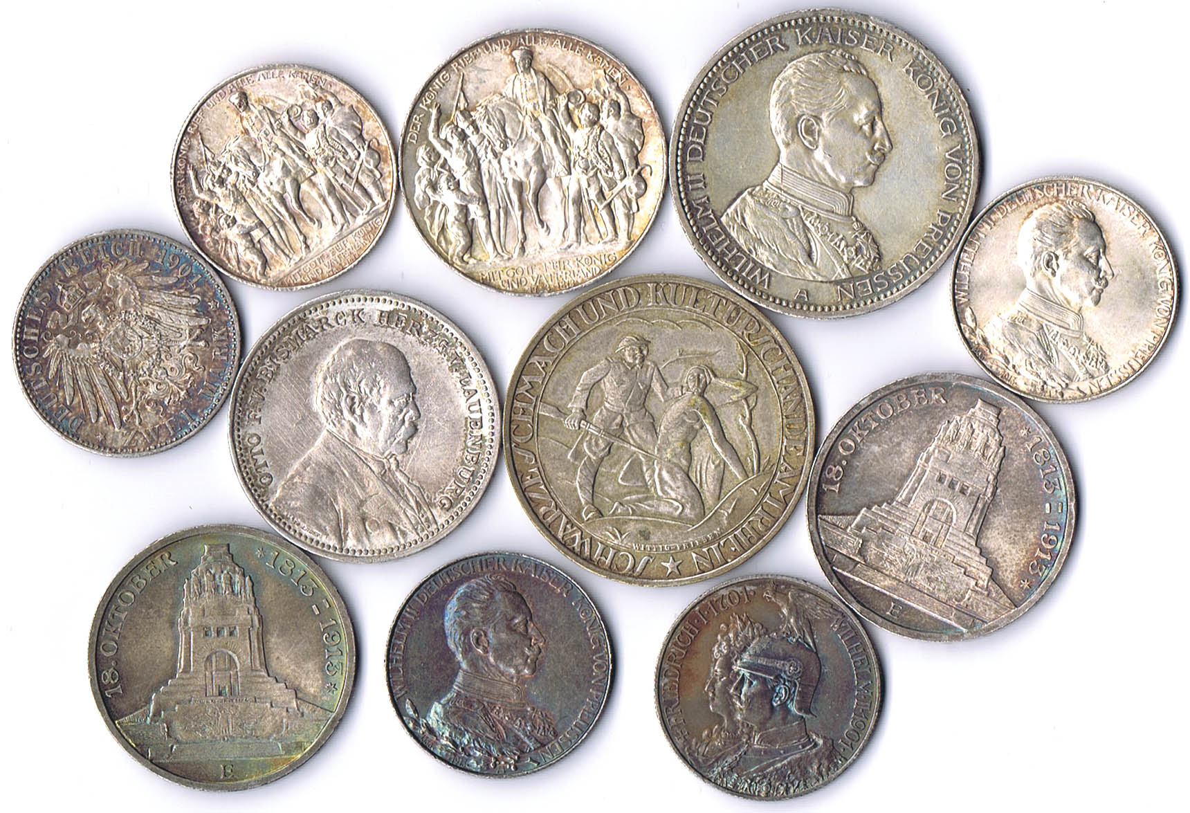 ½ Mark 1905A, 2x 1907A, 1913A, 1915A und D, 1 Mark 1873A, 1899A, 1907A, 1915A 10 Stück s-vz