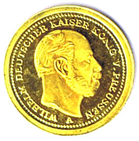 20 Mark 1871 A Nachprägung der ersten deutschen Reichsgoldmünze zu J. 243 GOLD 585, 0,5g Ø 11mm PP