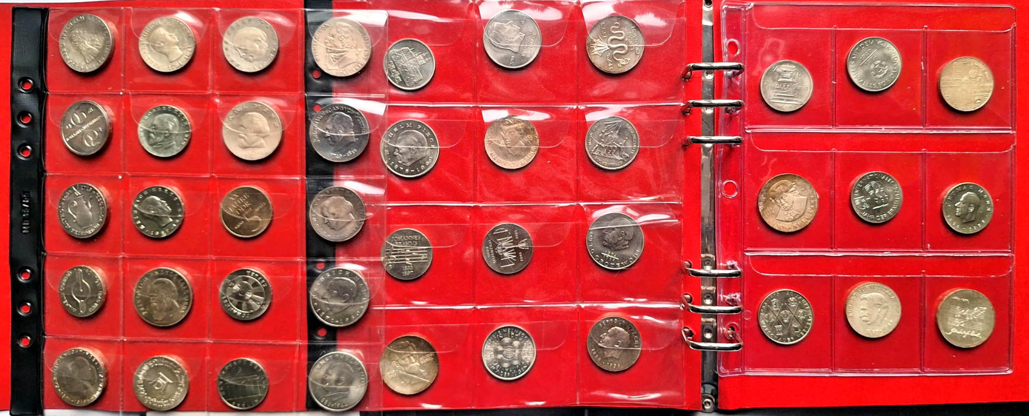 Verschließbares Album Münzen Niederlande und etwas Niederländisch Antillen ab etwa 1917, n.A.d.E. weit über 1000 Stück, nur wenig Silber bis 10 Gulden 1970. Dazu noch 3 Albenseiten DDR-Kleinmünzen 1948-53, eine Albumseite 20x 10 Pfg. Kaiserreich und 5 bankfrische Rollen je 25x2 Euro Stücke: Élysée- Vertrag Münze Berlin, 50 Jahre Kniefall Münze Karlsruhe, Nordrhein-Westfalen 2011 J, Baden-Württemberg 2013 D, Mauerfall 2019 F (zusammen 250 Euro Nominalwert) Euros prf. sonst unterschiedliche Gebrauchserhaltung
