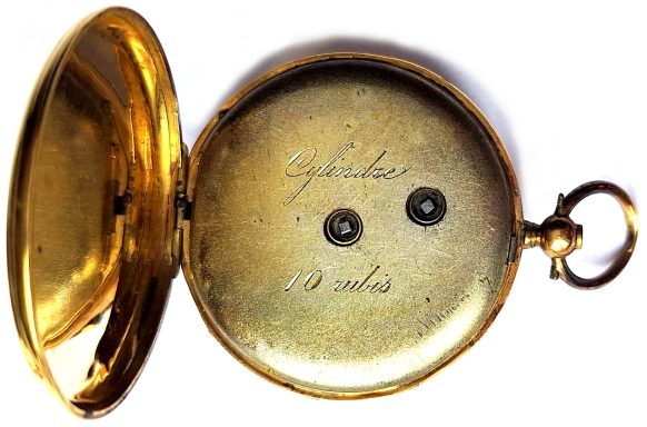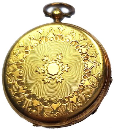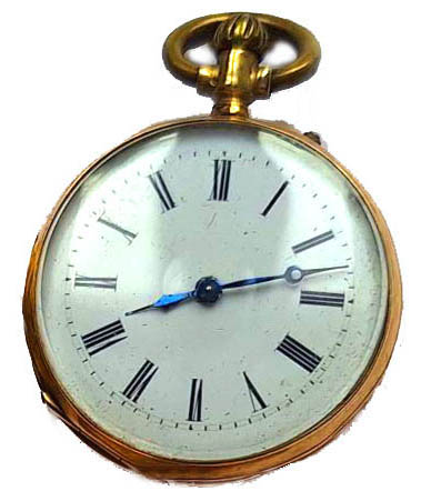 Goldene Taschenuhr Lépine Cylindre 10 Rubis, Schlüsselaufzüge, Schlüssel fehlt, Rückseite Sprungdeckel, Ø 33 mm, gemarkt K18 (Gold 750/1000) Gesamtgewicht 24,9g, Gebrauchsspuren am Rand