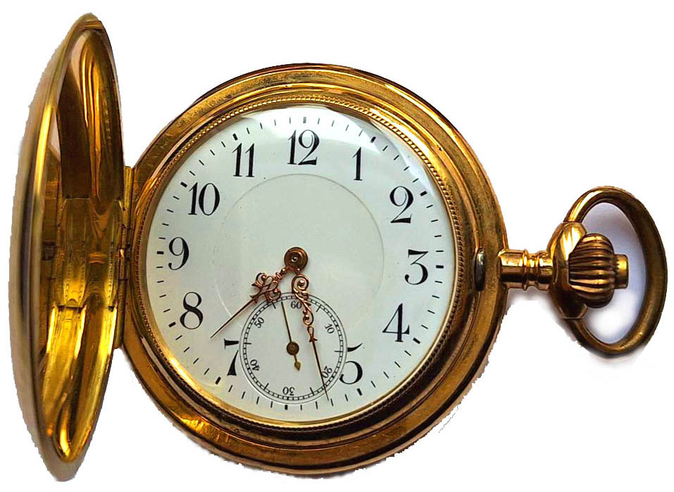 Goldene Savonette Taschenuhr System Glashütte mit drei Deckeln, etwa um 1910, beide Aussendeckel mehrfach gemarkt 585er Gold, funktionsfähig, Ø 54 mm Gesamtgewicht 103g, gute Gebrauchserhaltung