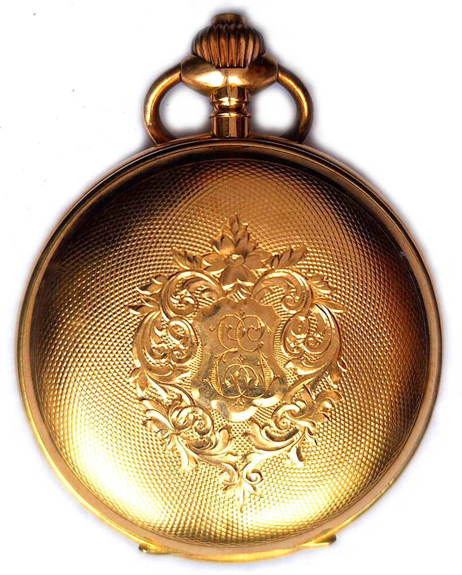 Goldene Taschenuhr Lépine Cylindre 10 Rubis, Schlüsselaufzüge, Schlüssel fehlt, Rückseite Sprungdeckel, Ø 33 mm, gemarkt K18 (Gold 750/1000) Gesamtgewicht 24,9g, Gebrauchsspuren am Rand