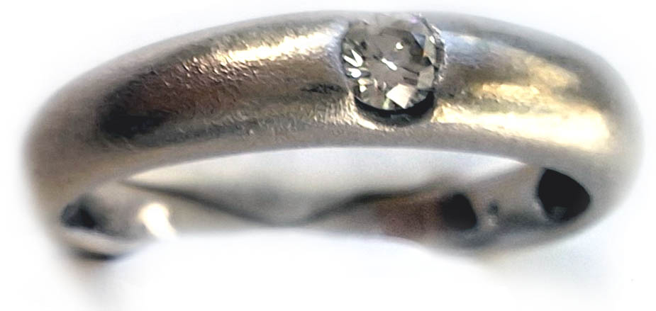 Brillantring, Weißgold mit in die Ringschiene eingelassenem und somit gut geschütztem Brillant ca. 0,1 ct., weisser Stein guter Qualität, Ringschiene außen matt, 3,9g Gold 585, RM 48 (US 4,5) Tragespuren, Gebrauchserhaltung
