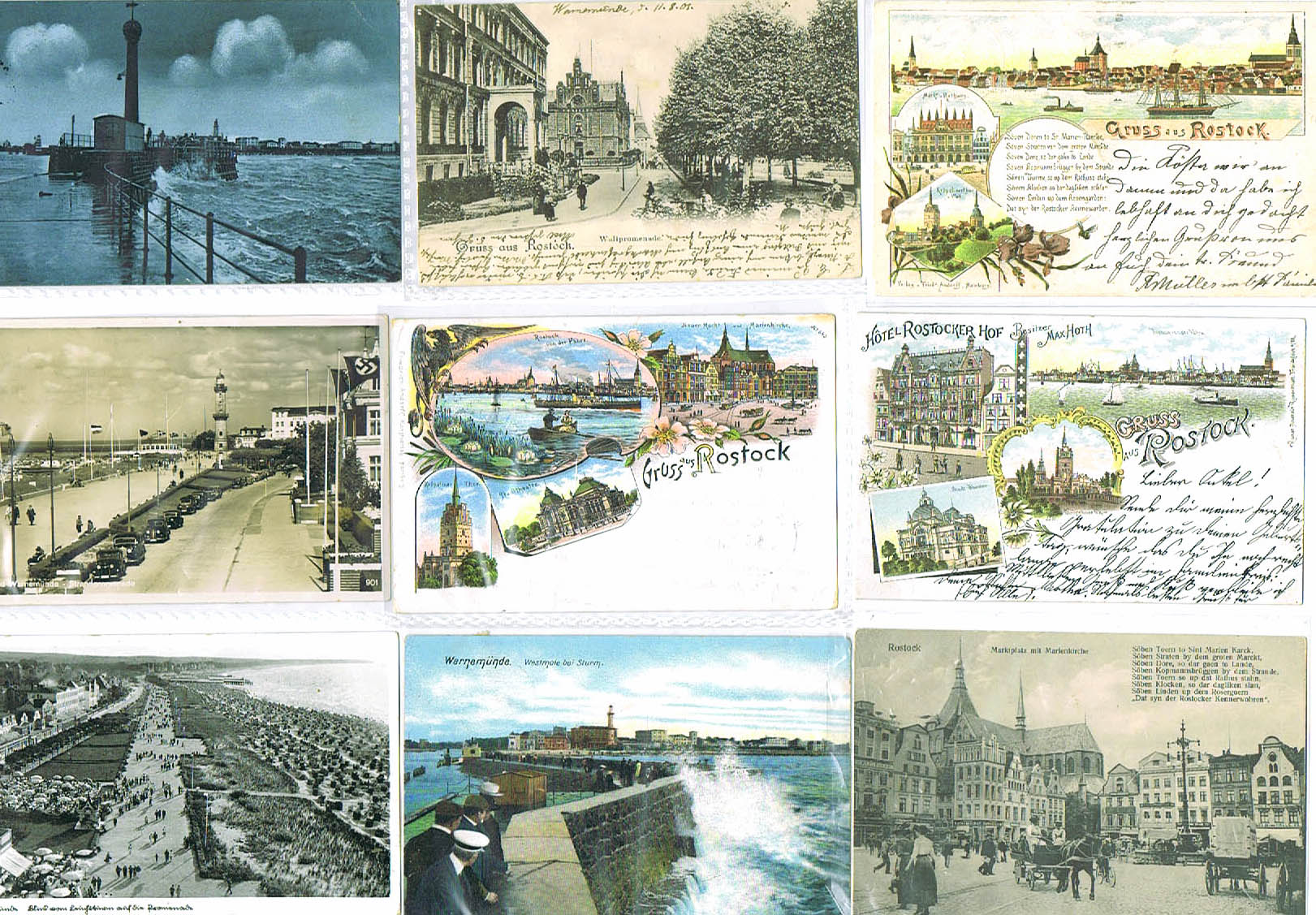 Rostock und Warnemünde 12 Karten 1893-1966, dabei mehrere Gruss aus Lithos ab 1893 in schöner Erhaltung WGB-FKF